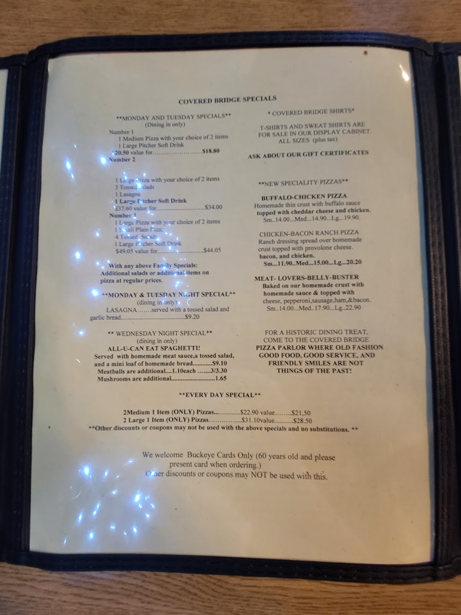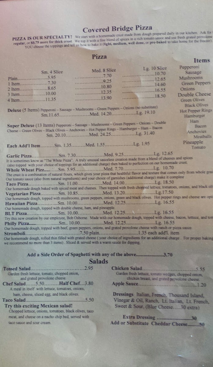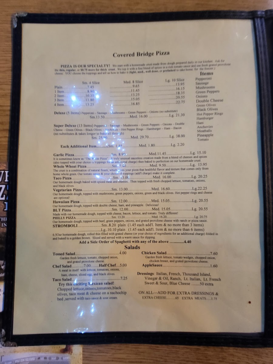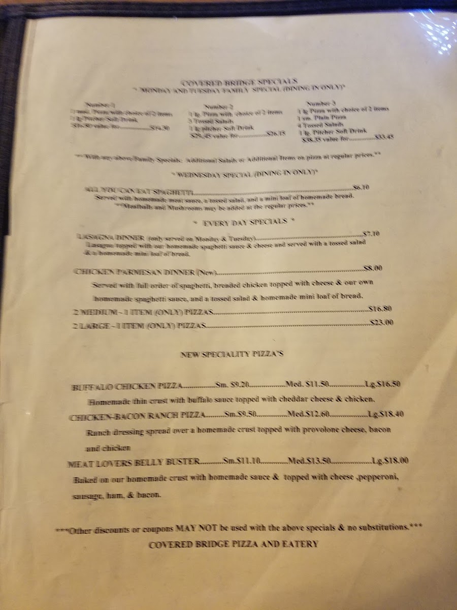 Customer reviews highlight not only the excellence of the pizza—perfect dough and just-right sauce—but also the exceptional service and the restaurant's commitment to customer safety. Discover the inviting ambiance and let your culinary journey at Covered Bridge Pizza Parlor begin!